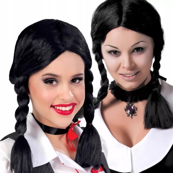 Twoje stroje Paróka hosszú Fekete copf jelmez Wednesday frufru jelmezALLEGRO